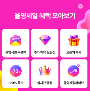 | 외국인 프로모션 | 해외 인기 상품 특가, 다양한 결제 할인 | 관광객 대상 |
